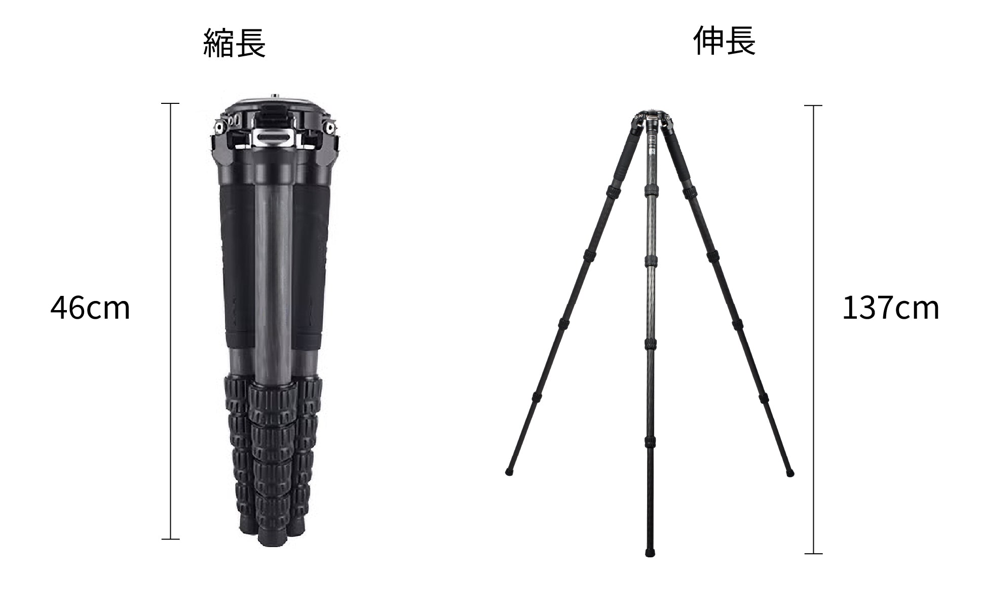 ・システマティック5段カーボン三脚、ショートモデル